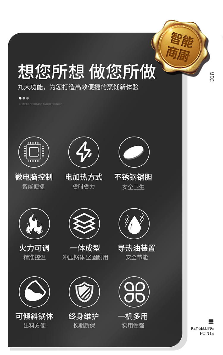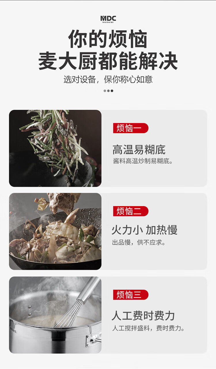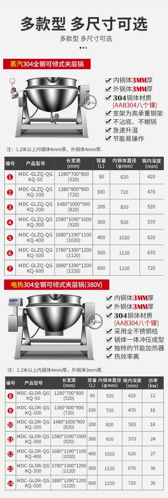 麦大厨 MDC-ZDH15-QGKQ-50-12 汤锅 380V 12KW电热304全钢可倾式夹层锅50L